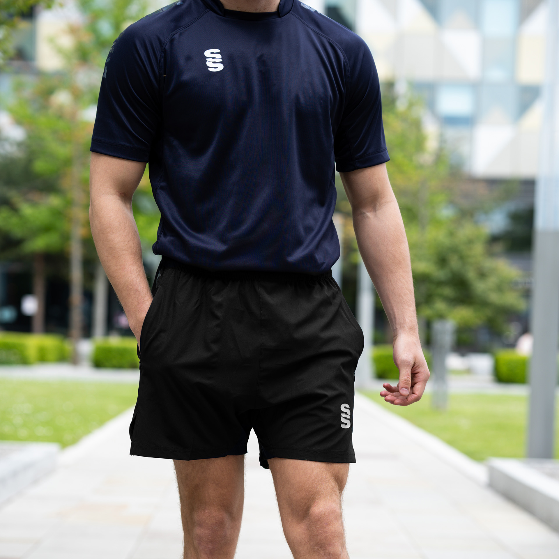 The Performance Gym Short is made with a poly peached micro-fibre blend, with a modern shorter leg length. They're built for gym and physical exercise and feature an elasticated hem with draw cord for flexibility and comfort. 2 Zipped pockets allow for small belongings. To finish, our Surridge SS logo is situated on the left bottom hem.