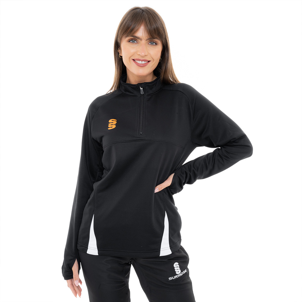 The Fuse Performance Top is made from a heavy brushed French Terry material to give warmth and comfort. With a 1/4 zip neck detail it's made to look modern but add breathability, along with a reflective zip detailing. It comes with an open hem with draw cords, and binding on the sleeve ends with thumb holes. With our choice of dual print trims, you can personalise to your liking. To finish, our Surridge SS logo is printed on to the right chest.